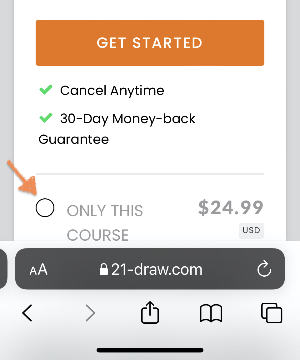 - On Mobile: select "courses" from the dropdown in the upper left corner. Click the course you want to buy and then check the option "only this course".