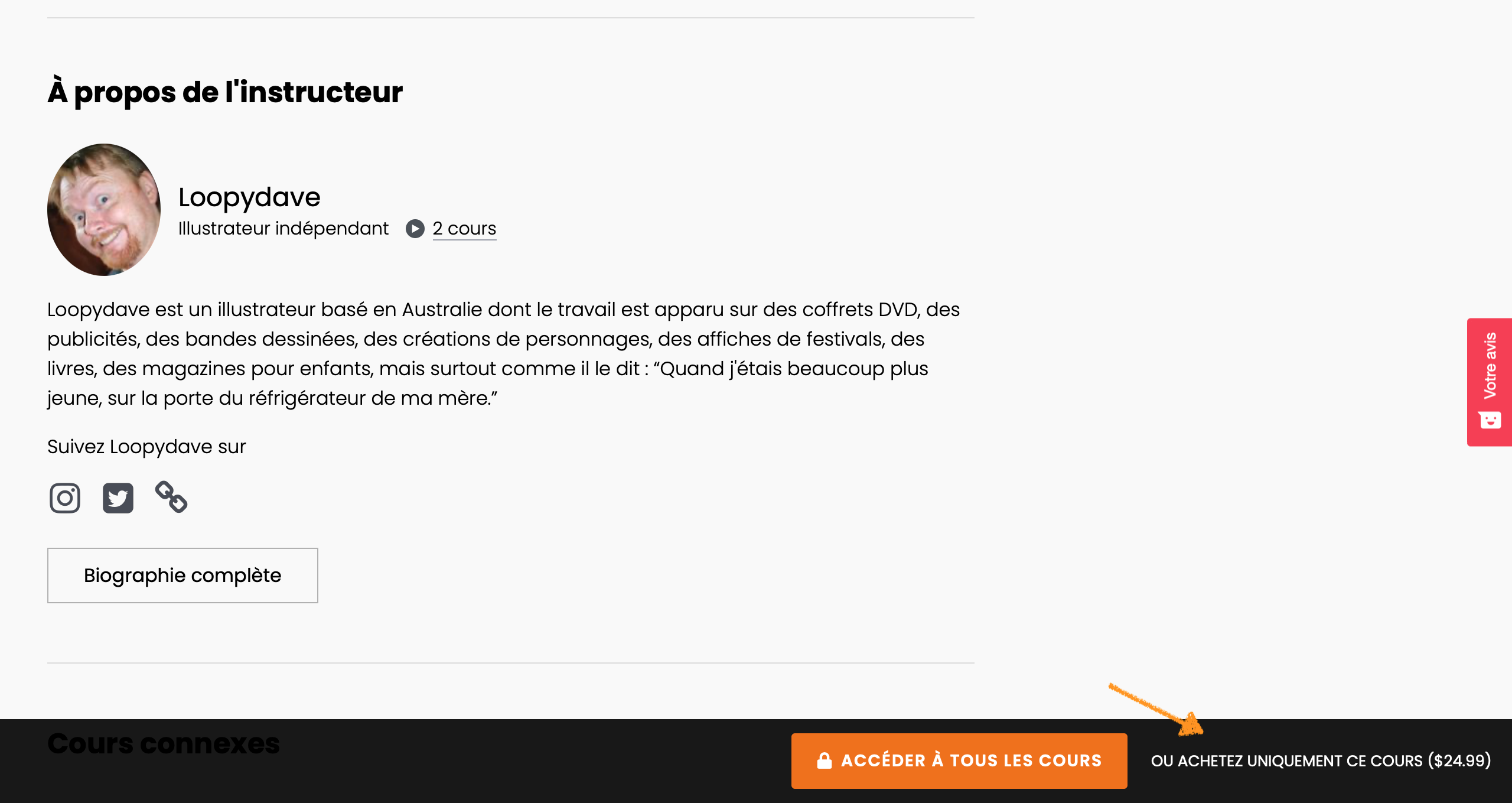 Si vous n'avez pas encore de compte gratuit, visitez notre page de cours et cliquez sur le cours que vous souhaitez acheter. Vous verrez l'option d'acheter le cours individuel.